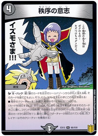 (カードを封印するには、自分の山札の上から1枚目を裏向きのままそのカードの上に置く。コマンドがバトルゾーンに出た時、その持ち主はそのコマンドと同じ文明を持つ自身のカードから封印を1つ、墓地に置く。クリーチャーが封印されている間、両プレイヤーはそのクリーチャーを無視する)