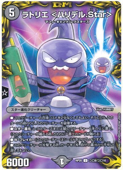 ■スター進化:レクスターズまたは闇のクリーチャー1体の上に置く。(このクリーチャーが離れる時、かわりに一番上のカードが離れる)