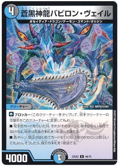 同じくシステムクリーチャーである《蒼黒神龍バビロン・ヴェイル》も高性能……というかコイツに至っては執筆中もしばらくデッキに入っていた。