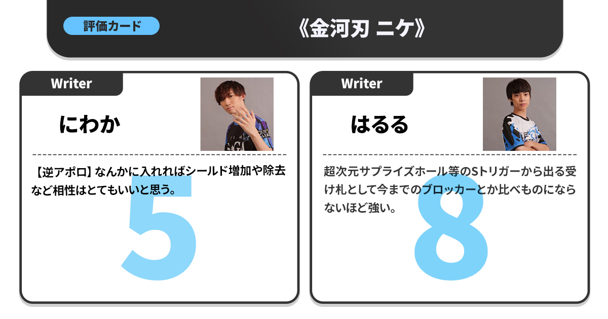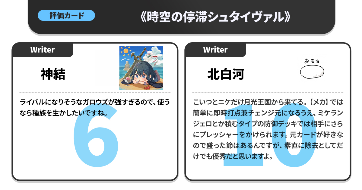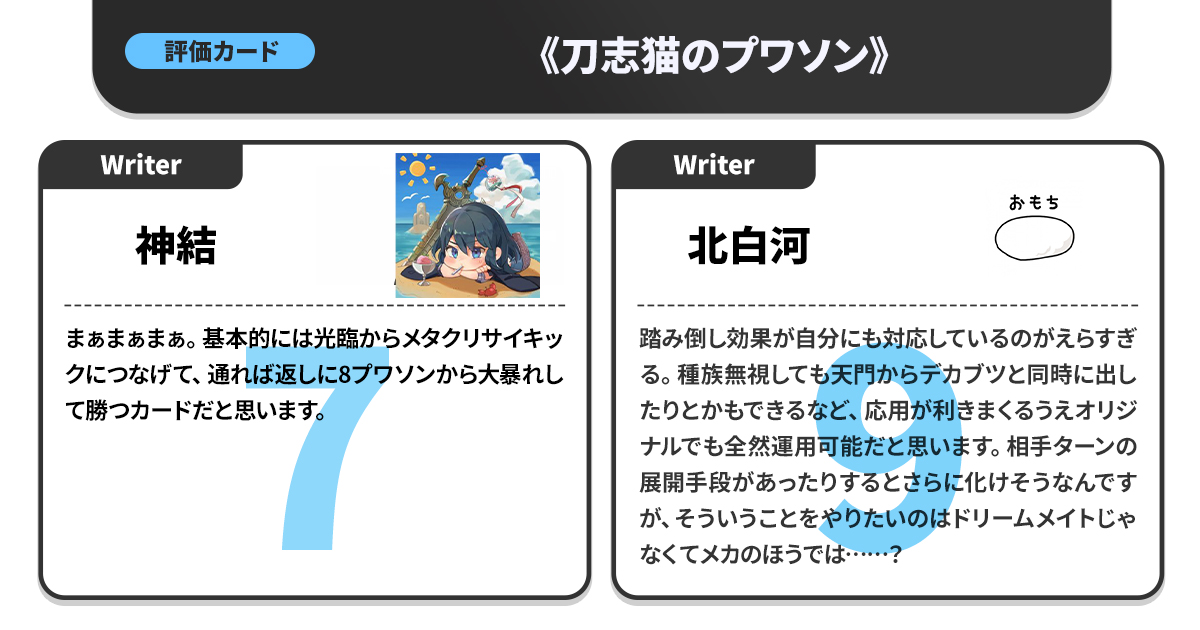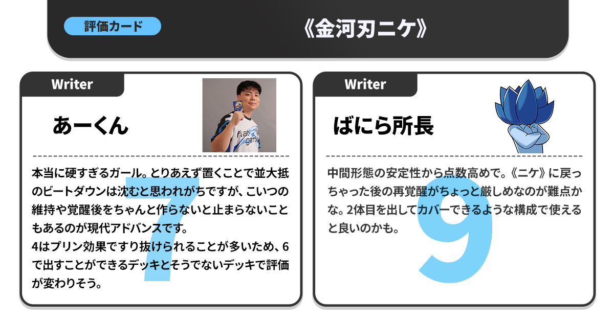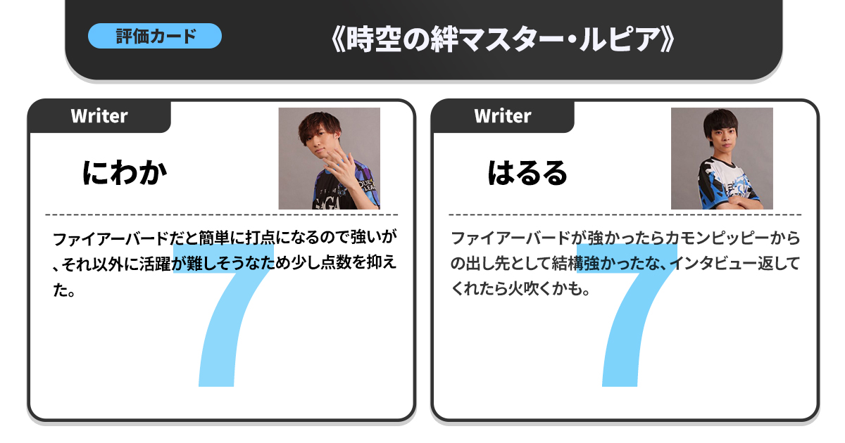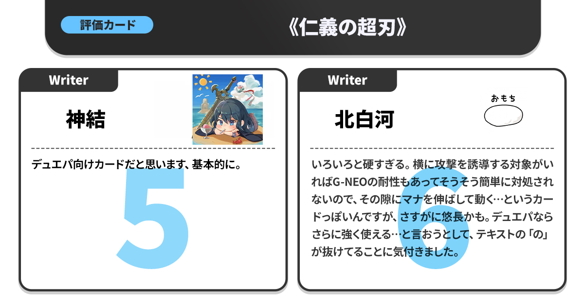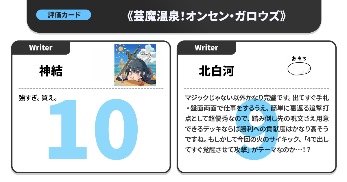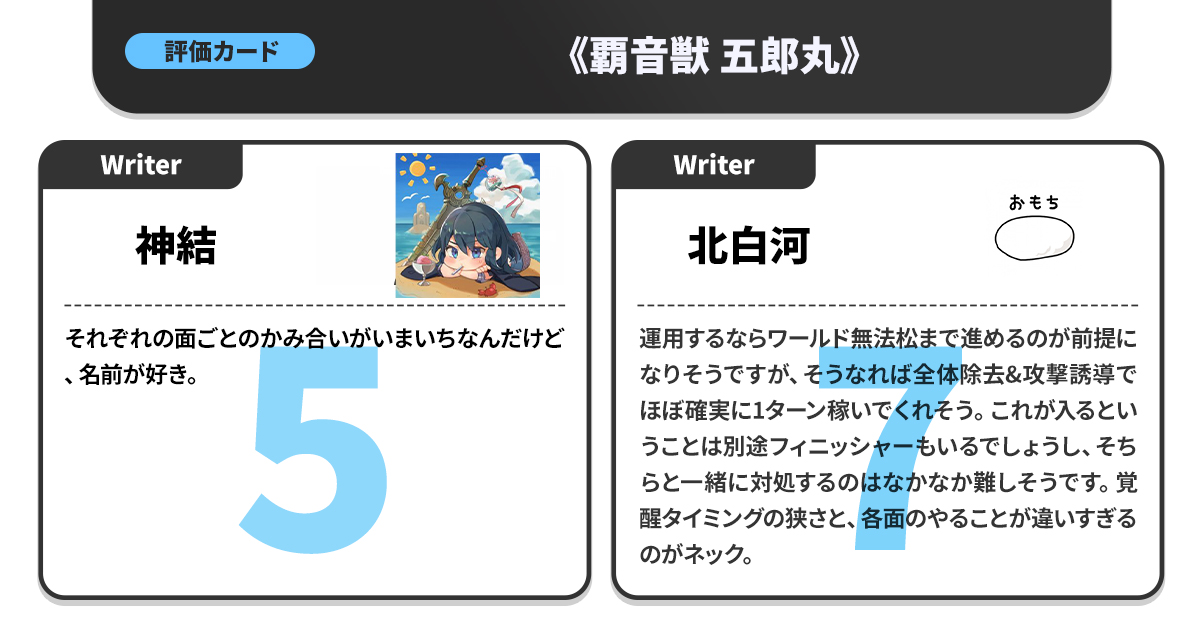カジュアル目線でのポイント付けという貴重な視点を持つため、「競技勢と同じ高得点がついたカードはマジですごい」という指標にもなっている。