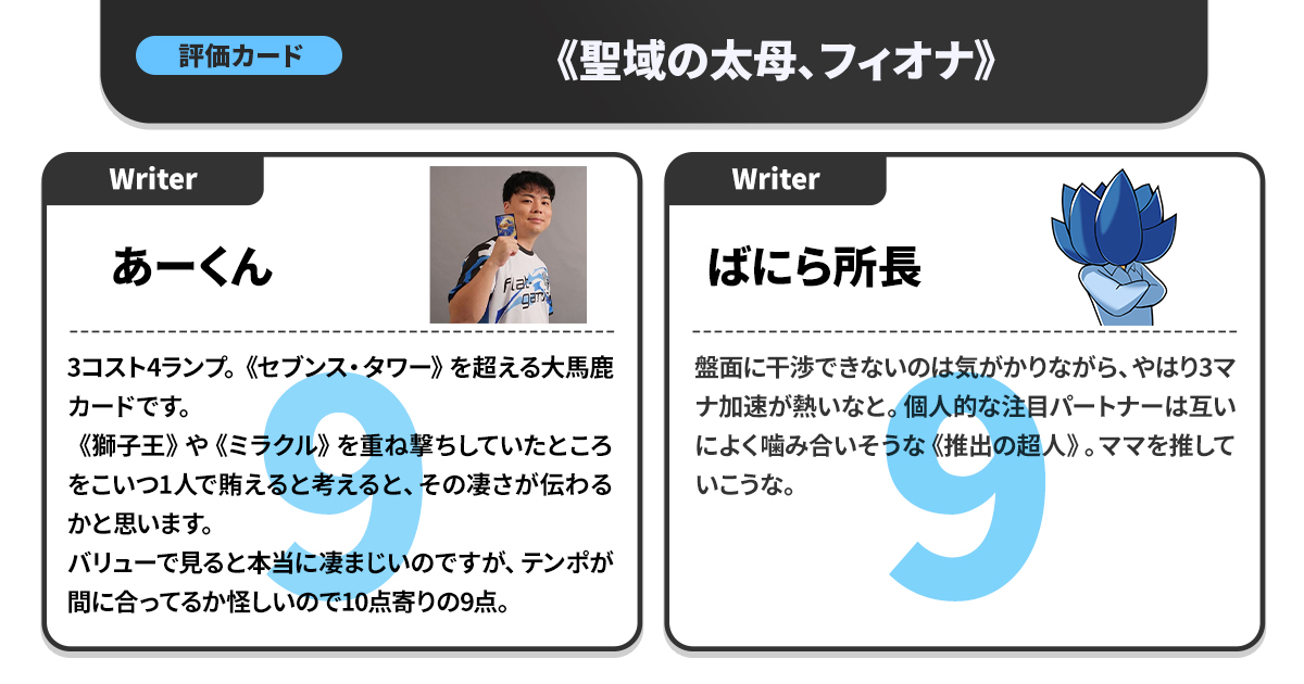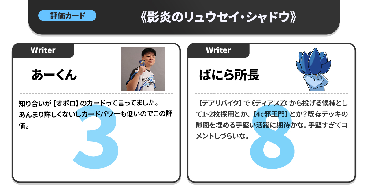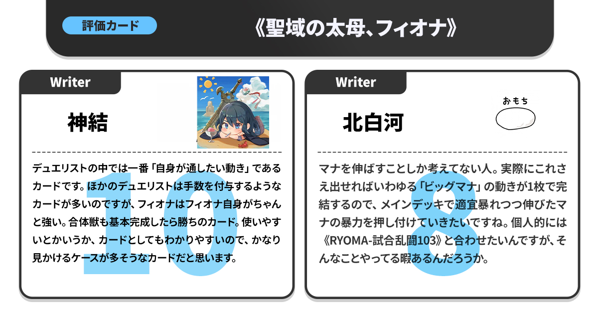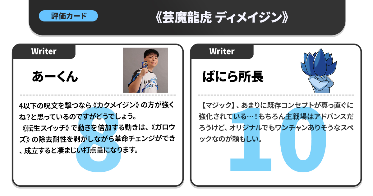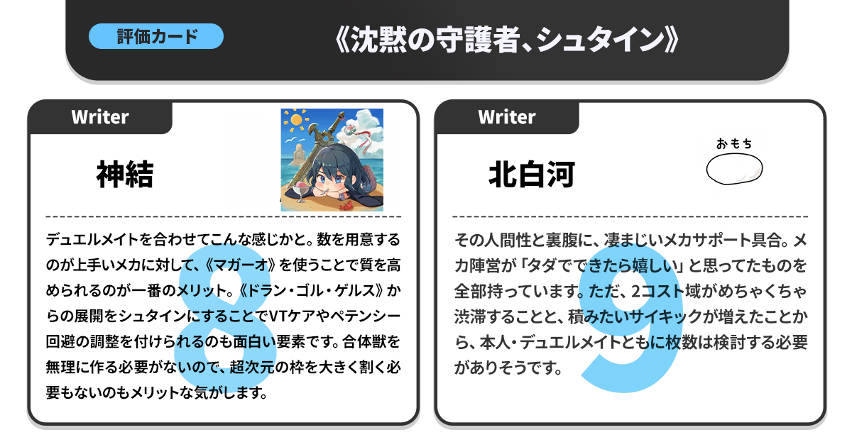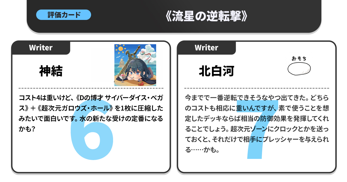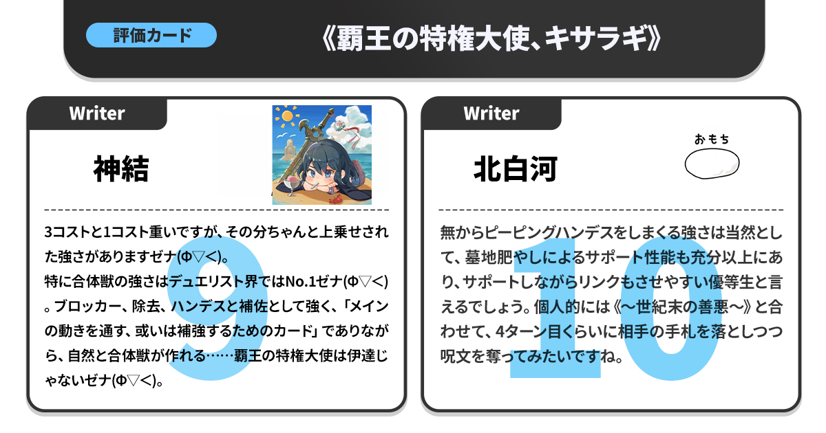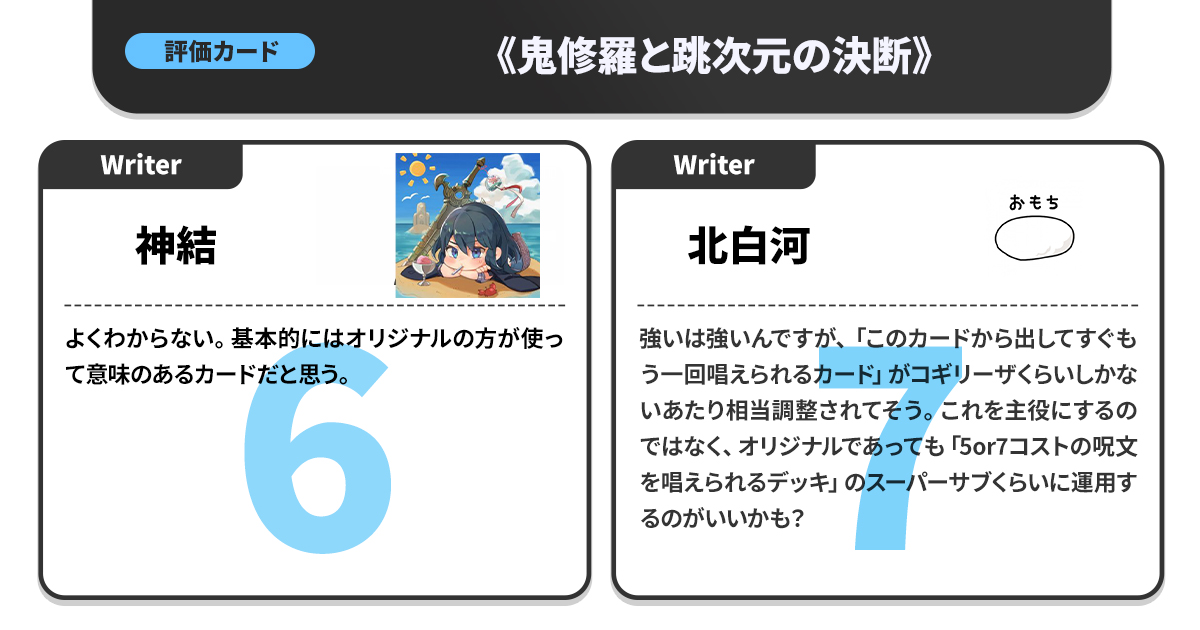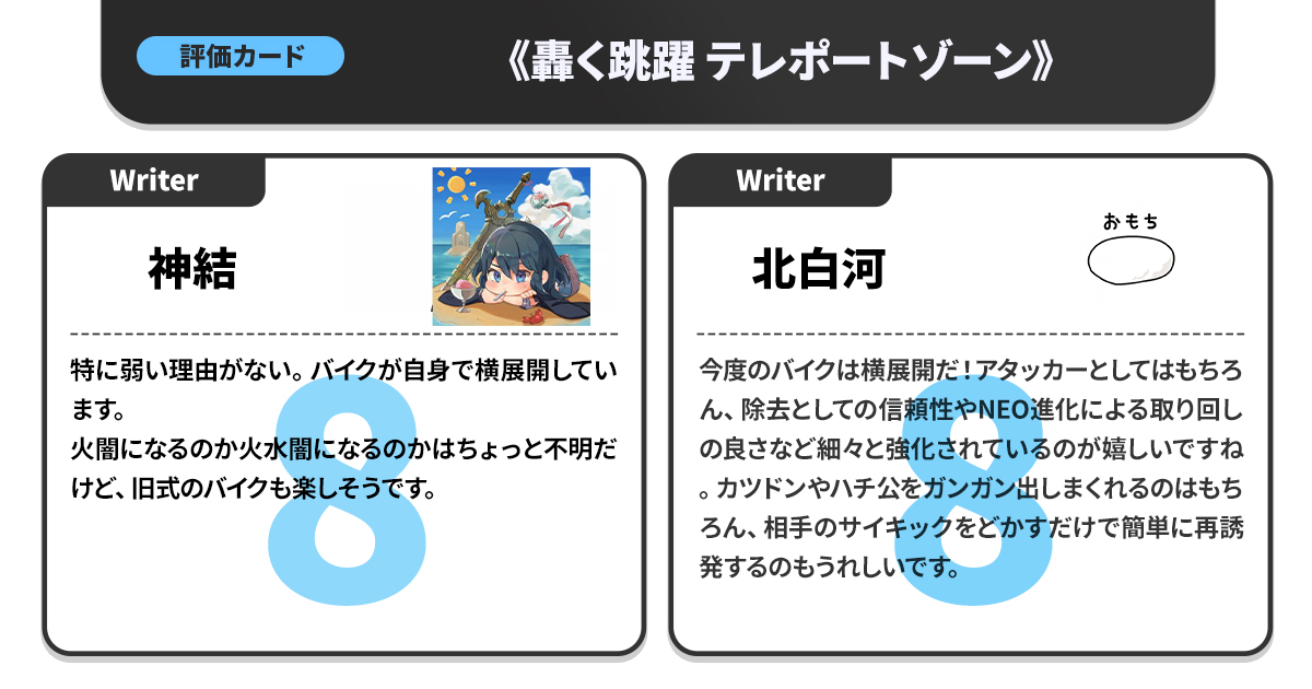 カジュアル目線でのポイント付けという貴重な視点を持つため、「競技勢と同じ高得点がついたカードはマジですごい」という指標にもなっている。