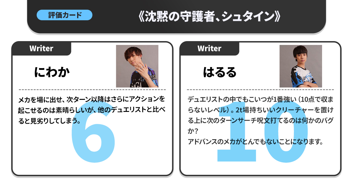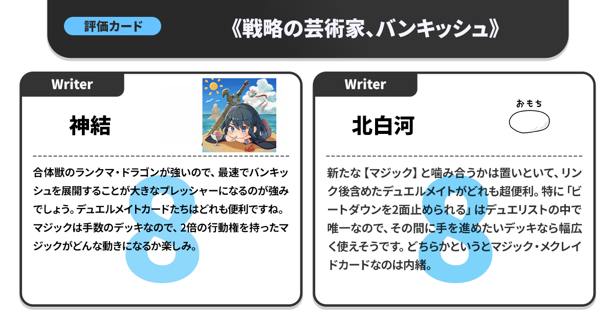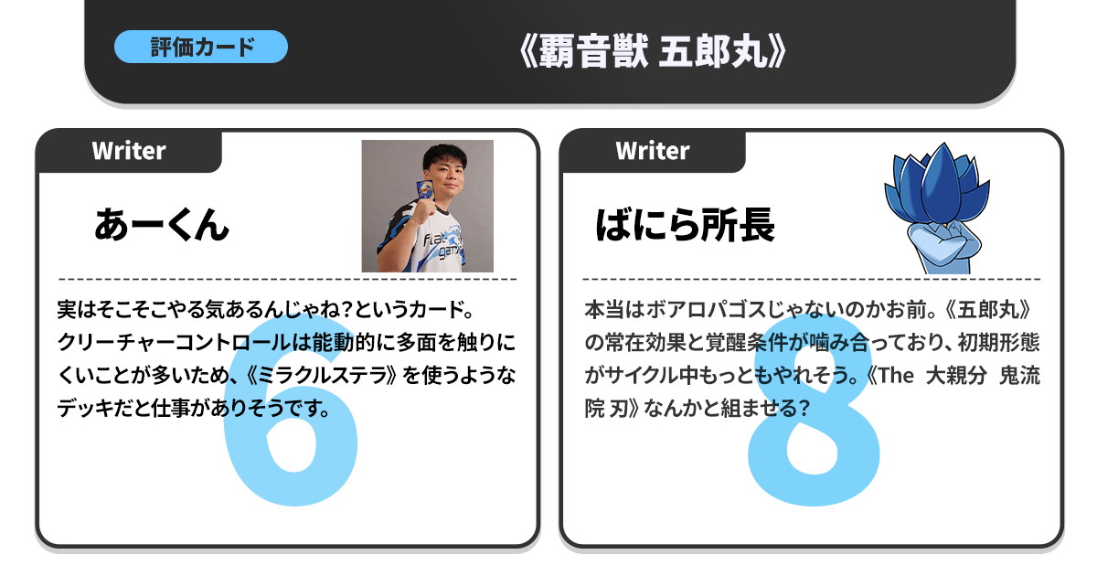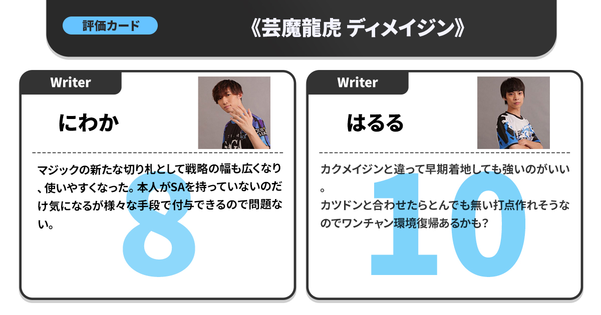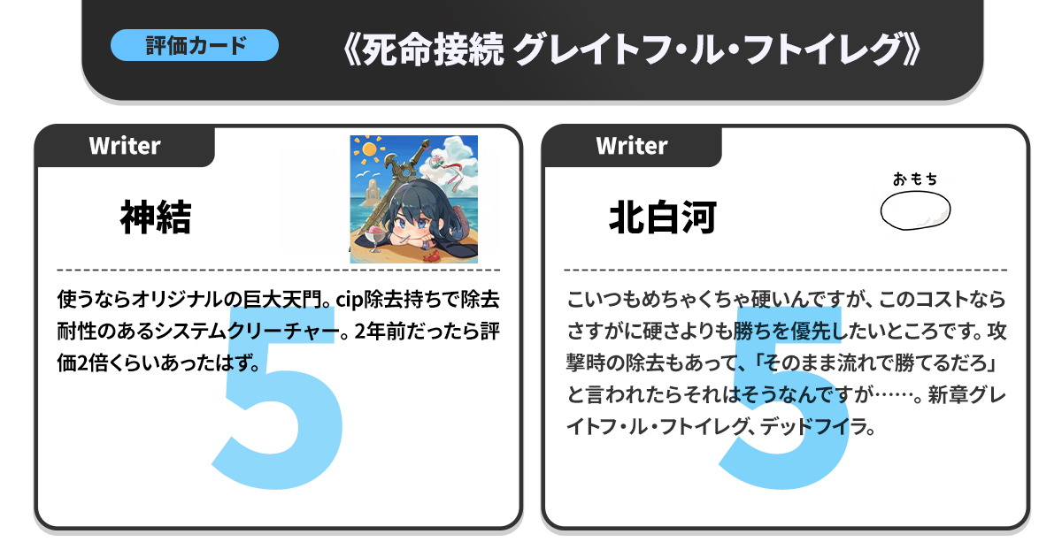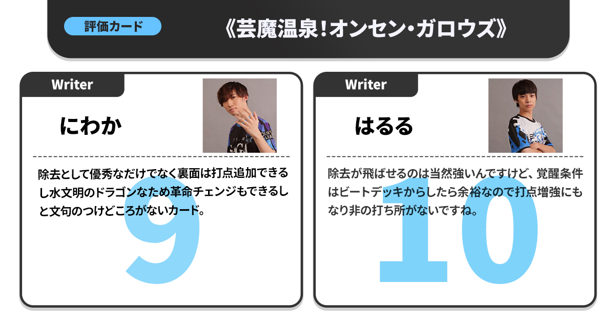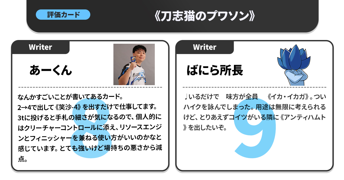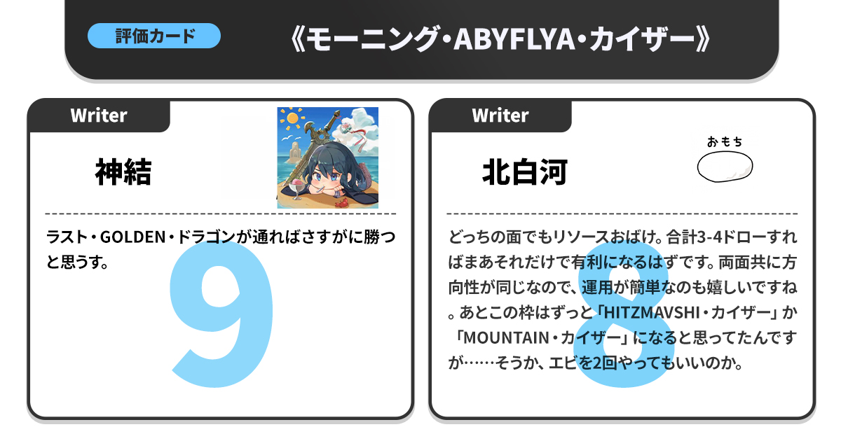 カジュアル目線でのポイント付けという貴重な視点を持つため、「競技勢と同じ高得点がついたカードはマジですごい」という指標にもなっている。