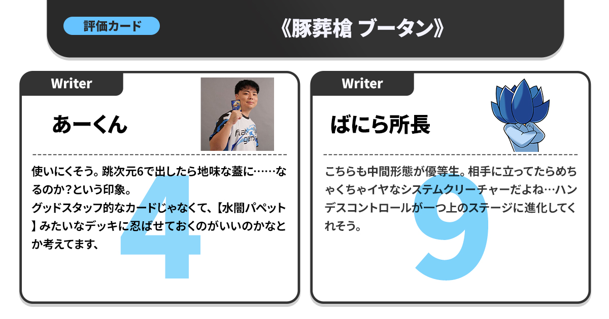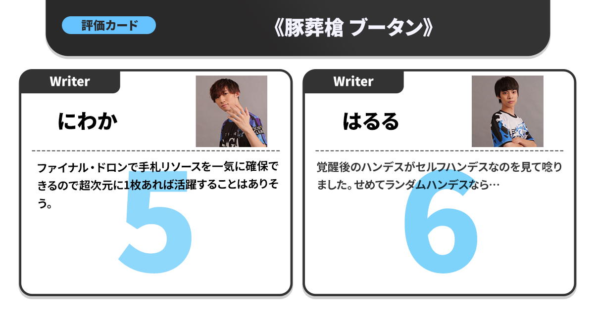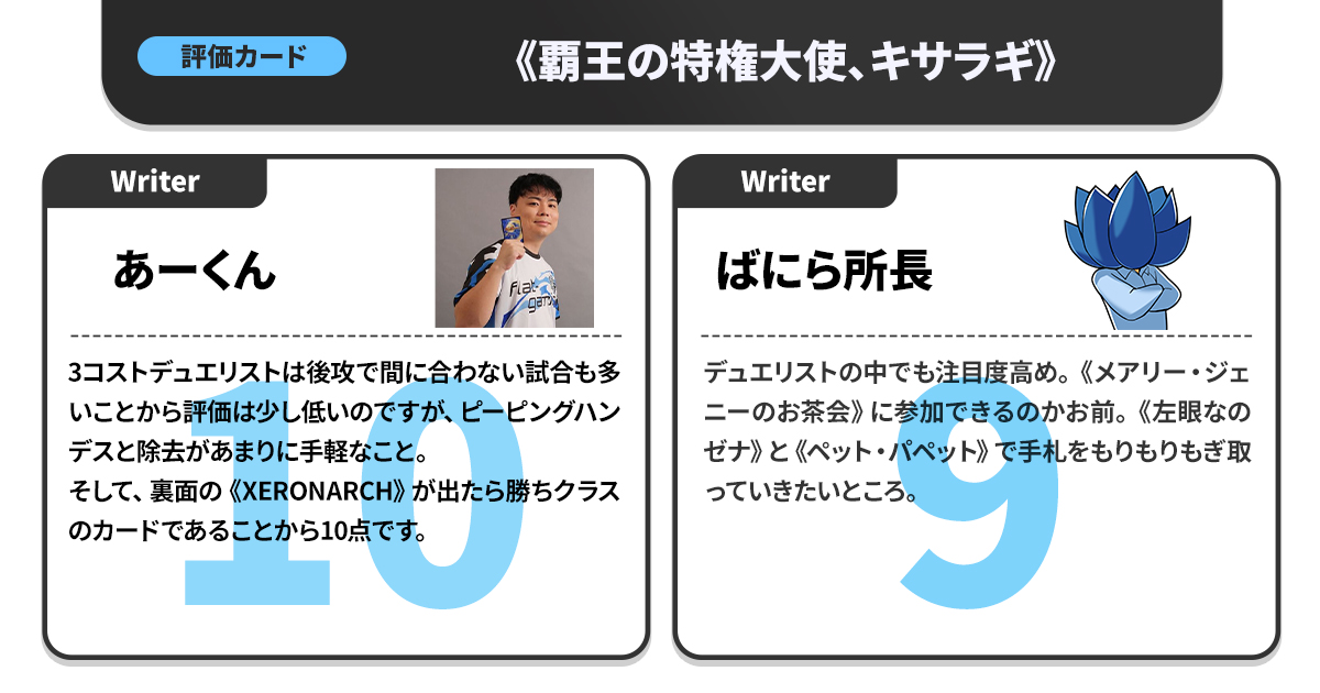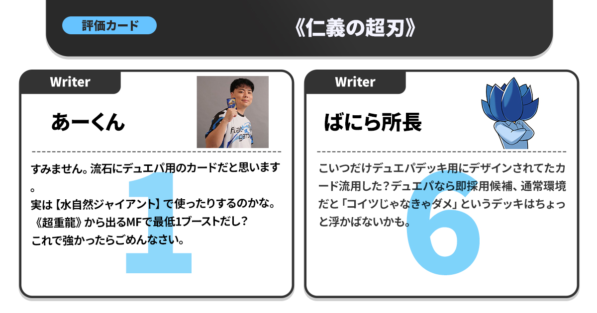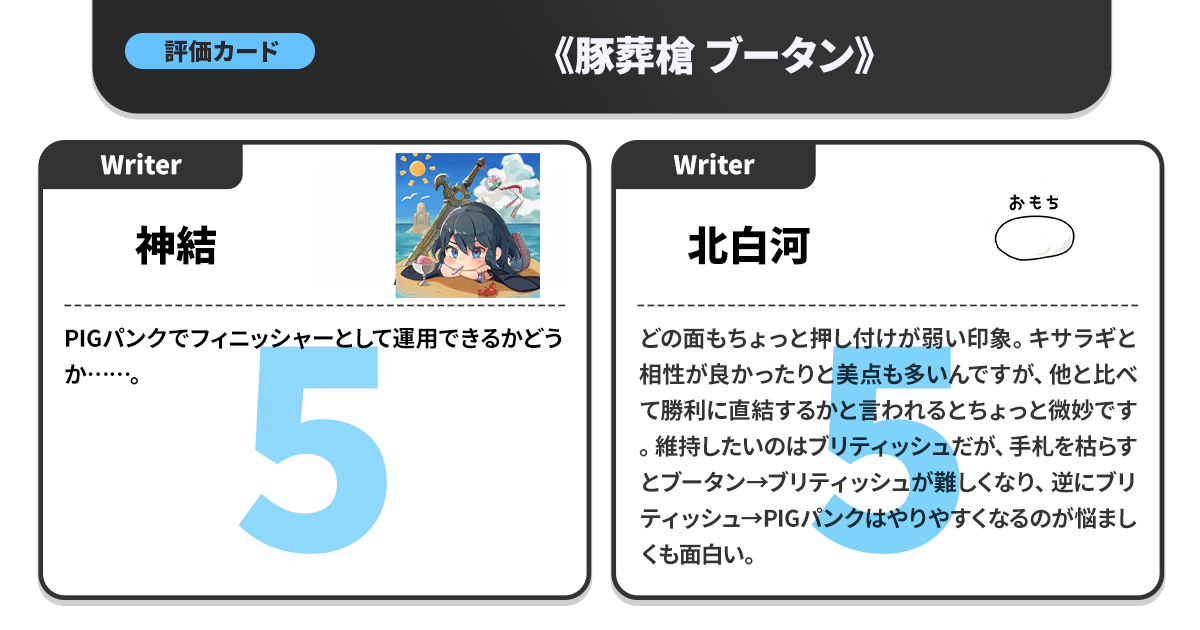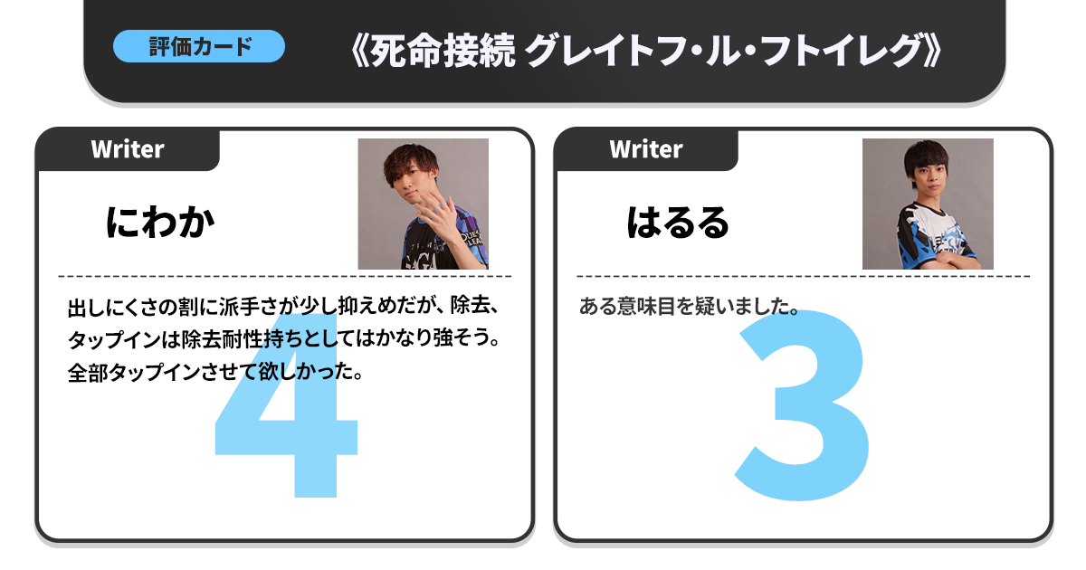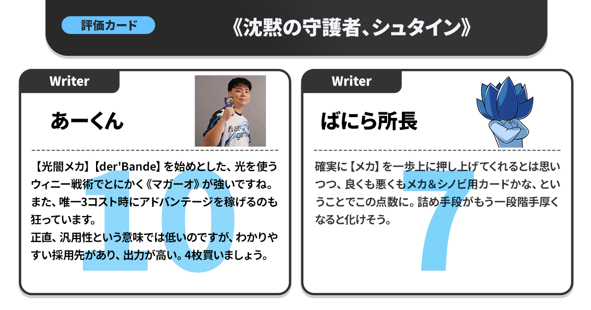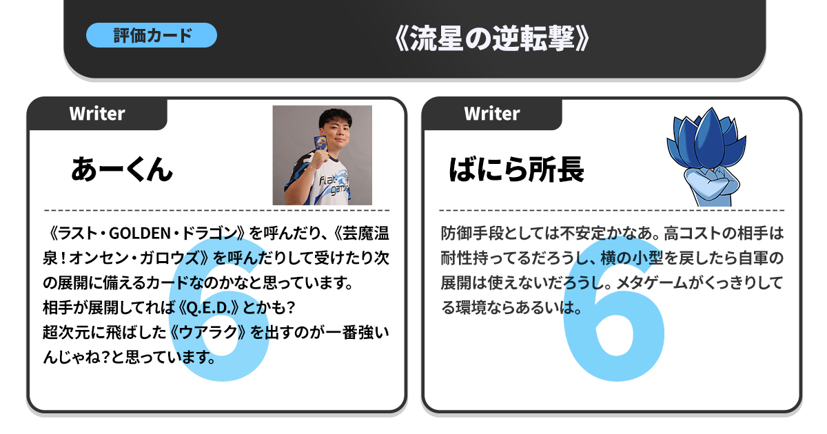 カジュアル目線でのポイント付けという貴重な視点を持つため、「競技勢と同じ高得点がついたカードはマジですごい」という指標にもなっている。