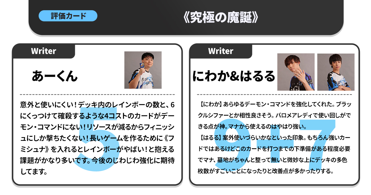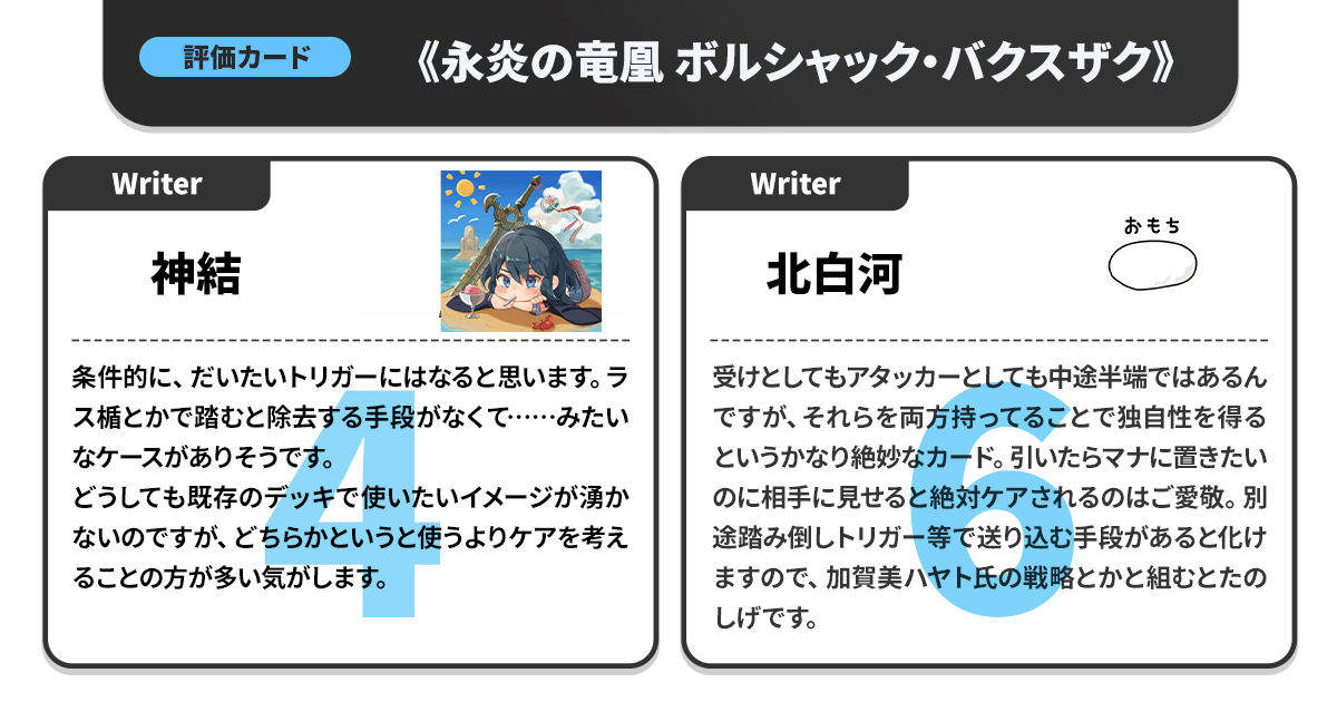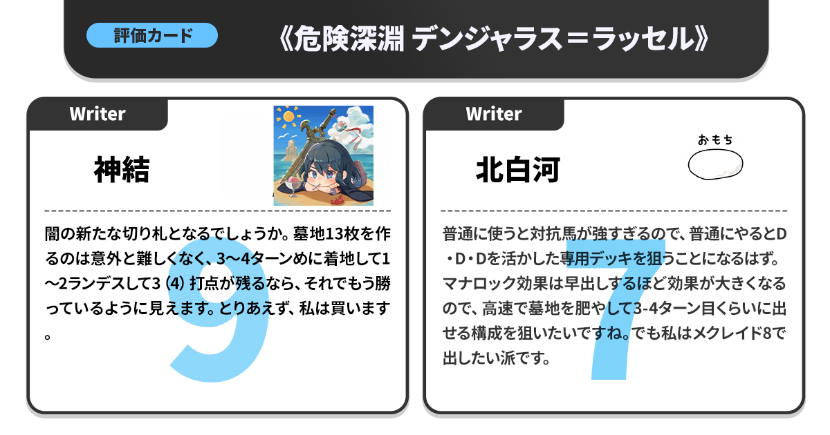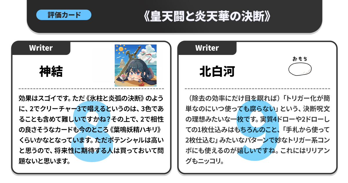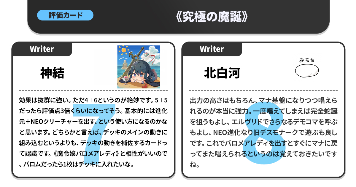 広く深い教養と語彙から紡がれる名文の数々はデュエマの歴史を伝え、またそれ自体が新たな歴史の1ページとなる。