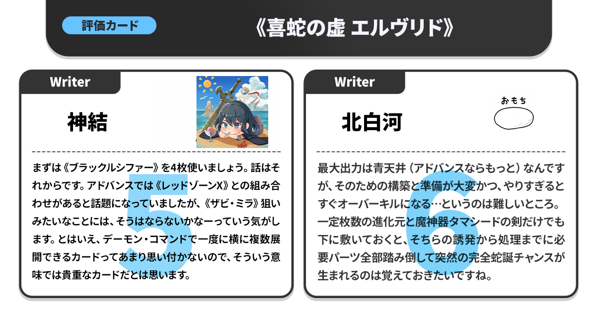 執筆:「歴史探訪」「歴代名作デッキ」「GoD」「斜にマス」ほか