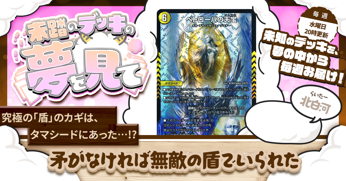 ■このタマシードが出た時、自分のシールド1つにつき、自分の山札の上から1枚をそのシールドの上に表向きで置いてもよい。