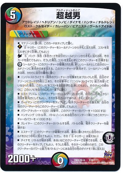とはいえただ《 超越男 》を表向きのシールドに貼り付けただけでは、「ブレイクされると意味もなく墓地に行く無力なシールド」が発生するだけ。少なくともデッキを名乗らせるには、もう一手くらいは必要になりそうです。