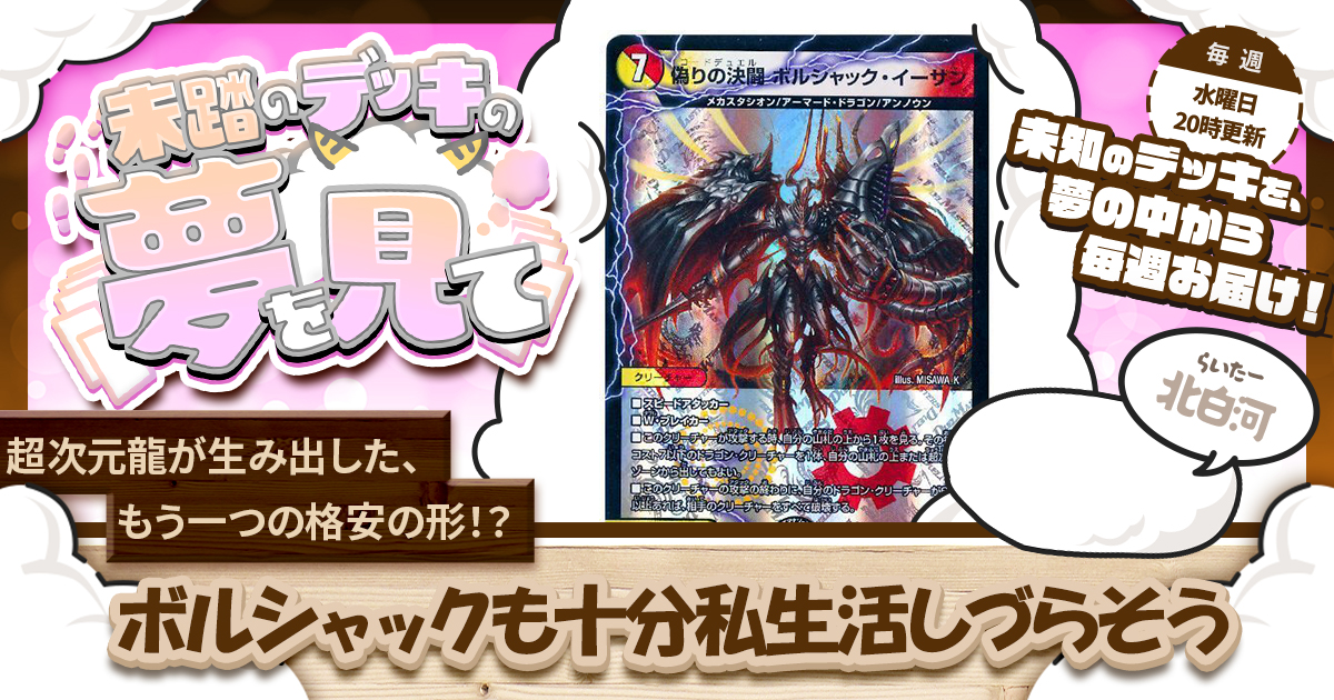 もしやるとしても、《 BOLSHA9-銅鑼-5 》なんか積まずに、文明あってて最大出力が高い《 偽りの聖霊王 オブリビオン 》軸にするわな……。
