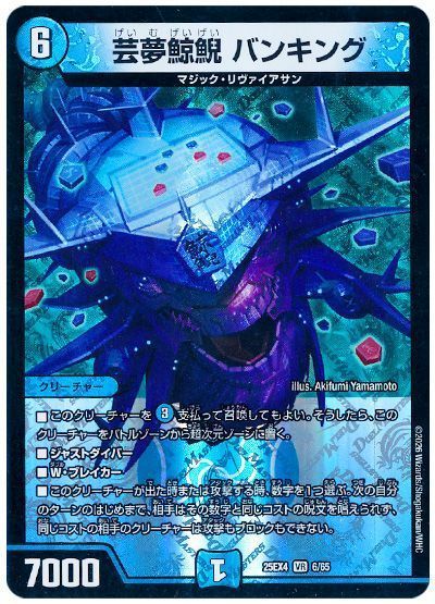 想定してないところのシナジーとしては、《鬼修羅と跳次元の決断》のSA化で《 芸夢鯨鯢 バンキング 》を射出することで数字を2つ宣言できるところとか。