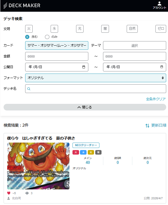 というわけで、《 ARC REALITY COMPLEX 》《 サマー・オジサマー/ムーン・オジサマー 》での検索結果は……!