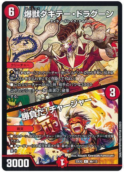 ■このクリーチャーが「D・D・D」によって出た時、このクリーチャーから進化できるコスト7以下のクリーチャーを1体、自分の手札または山札の上から、このクリーチャーの上に置いてもよい。