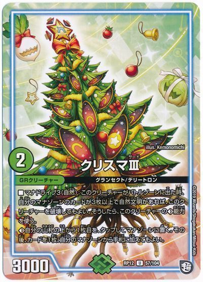 ■マナドライブ6(自然):このクリーチャーがバトルゾーンに出た時、自分のマナゾーンのカードが6枚以上で自然文明があれば、コスト5以下の進化ではないクリーチャー1体またはコスト5以下のオーラ1枚を、自分のマナゾーンからバトルゾーンに出してもよい。 (ゲーム開始時、GRクリーチャーは山札には含めず、自分の超GRに置き、バトルゾーン以外のゾーンに行った場合、超GRの一番下に戻す)