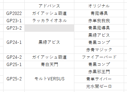 コロナ明け以降、アドバンスのGPは23年の秋期を除いて開催されています。