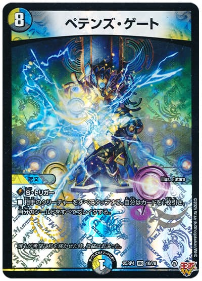 ■相手のクリーチャーをすべてタップする。自分はカードを1枚引き、自分のシールドをすべてブレイクする。