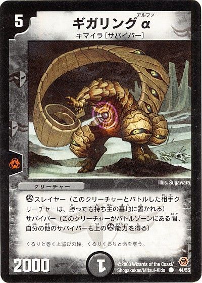 例えばこの《ギガリングα》がバトルゾーンにいれば、自軍のサバイバーは全員スレイヤーを持ちます。