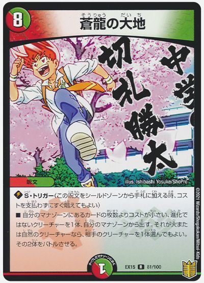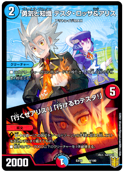 同パック収録の《 勇気と知識 テスタ・ロッサ&アリス/「行くぜアリス!」「行けるわテスタ!」 》 も合わせてクロニクルデッキの看板こと《 熱血武闘 カツキング 》と好相性で、これまた「デッキ買うなら揃えとけ!」枠の気配がしますね。