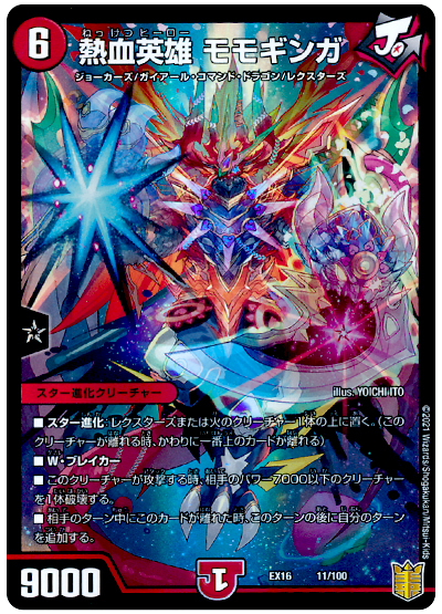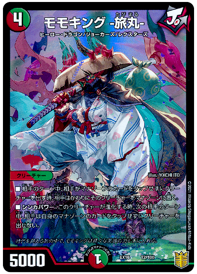 同パック収録の 《 モモキング -旅丸- 》で相手ターンの動きを抑制していけばより盤石です。