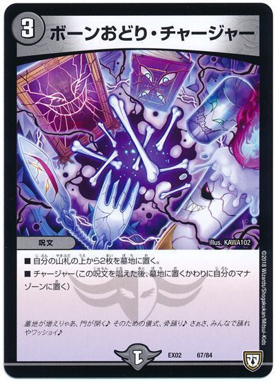気になる効果は、3ブーストからマナの全クリーチャー踏み倒し(cipは無効ですが)!要するに自分だけ《 チャージ3回、フリーエントリー! 》+《 轟破天九十九語 》という、アホみたいな盤面を築くことが可能です。見てるか村民まんじゅうさん!また轟破天学会が賑わうぞ!