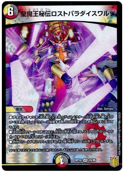 シールド総交換の際にEXライフシールドが剥がれるので、あとはクソほど分厚くなったシールドめがけて《 ラッキー・ダーツ 》《 聖魔王秘伝ロストパラダイスワルツ 》をぶつければ何もかもが終わります。