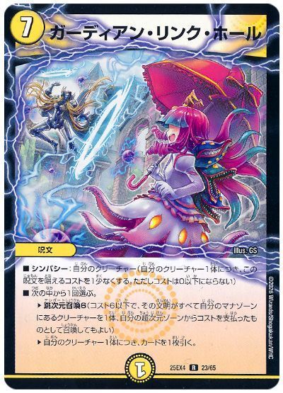 あとはシステムクリーチャーとして立たせておきたいんですが、《 ガーディアン・リンク・ホール 》を使うと覚醒し、コスト加重量を増やせることは覚えておきましょう。もちろん、相手によっては跳次元召喚6で直接送り込むのもアリですよ。