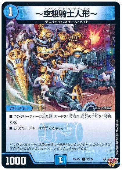 種族 デスパペット / スチーム・ナイト / 文明 水 / パワー1000 / コスト1