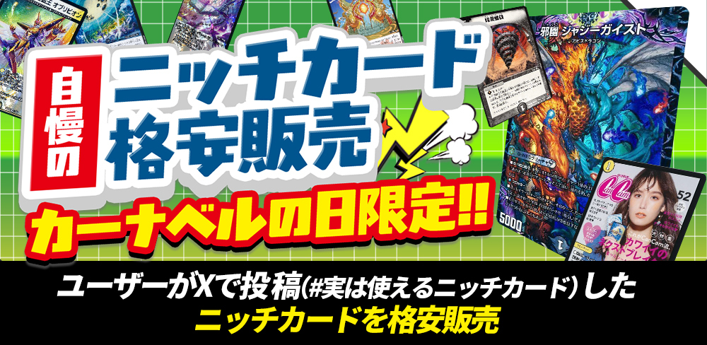 毎月、カーナベルさんにてお得な施策や企画などが走るお祭りの日。欲しかったカードを安く買うのもよし、掘り出し物を探すのもよし、ユーザー参加型企画に飛び込むもよし。