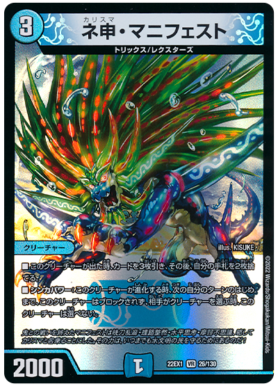 自らマナに行ってくれるおかげで、自分のテンポを阻害しません。あとから《サエポヨX⦆のマナ召喚能力で出しなおせるのもGOOD。