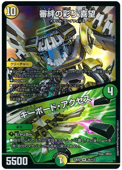 今月発売された「パンドラ・ウォーズ」で追加された新カードで、自分のクリーチャーが出た時に手札か超次元ゾーンからそのコスト以下のクリーチャーを踏み倒すことができます。