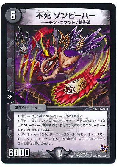 1番目の効果を無視して、《 邪眼の始祖 ロマノフ・アルファ 》の進化元にすることで、《 不死 ゾンビーバー 》に侵略して4マナ以下のクリーチャーを釣ることができます。
