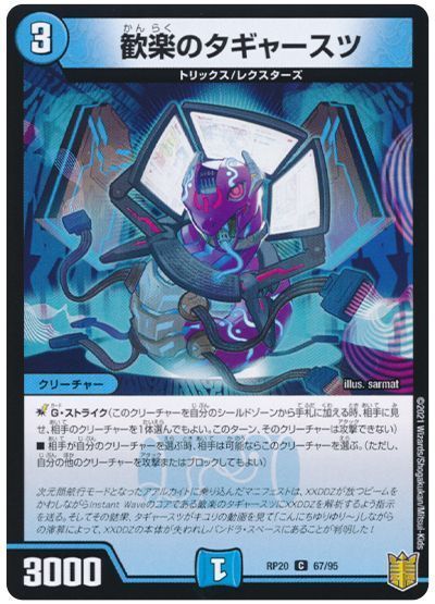 《 歓楽のタギャースツ 》はG・ストライクがついていて、簡易的な受け札にもなるので、一長一短ですね!!!!!