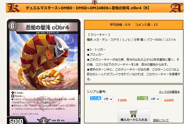 《 忍蛇の聖沌 c0br4 》に押され気味のトリガークリーチャー。