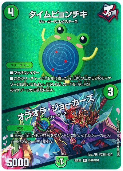 仮にその2枚がなくとも補えるのが《タイムピョンチキ/オラオラ・ジョーカーズ》の両面。確実に次のカードに繋ぐリソース確保が可能になります。