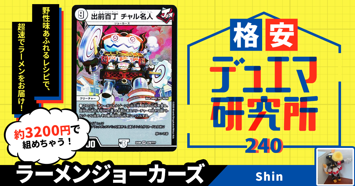 格安デュエマ研究所では2回目にお目にかかります。全てのジョーカーズを語ることを夢見る、格安デュエマ研究所の《ヤッタレマン》ことShinです。