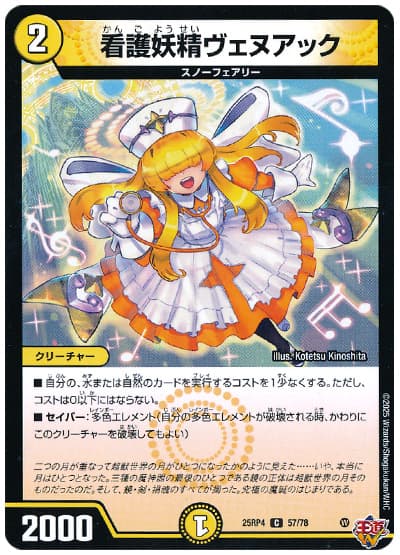 《メルキウス》の回収範囲に含まれる点も強力。《看護妖精》によって軽減できるカードであるので、《メルキウス》がない時のその補佐を担います。《メルキウス》と並べてもハイパーエナジーで別々にタップできますよ。
