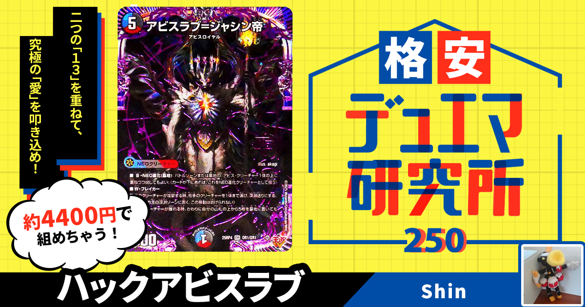 「このデッキ、こうしたらもっと良くなるんじゃない?」「このカードは相性良いんじゃないか?」「歌詞引用の努力は認めるが、めちゃくちゃ無理やりじゃない?」などありましたら、ページ下部からの「記事をツイート」をご利用頂きつつ、#格安デュエマ研究所で感想をつぶやいていただけると幸いです。