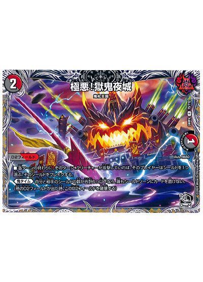 添えるだけでも《獄鬼夜城》は強力。テンポが早まるだけでなく、対処の難しいカードでもあります。しかし、相手に攻撃されるだけ相手のシールドをブレイクされてアドバンテージを得られてしまうので、決着を早期に着ける必要があります。