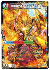 《爆勇王剣 ラッシュ・ギガハート》と《爆勇将龍剣 ガイア・オウバーン》を場に揃えられたら“世界”を手にする時!《龍覇合体 モルトWORLD》を降臨させ、相手の盤面もシールドも粉々に砕いたその勢いのままにダイレクトアタックをキメましょう。