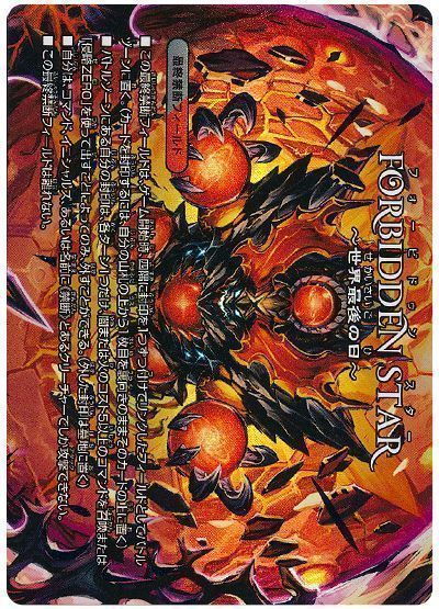 ■禁断爆発:このカードから封印が外された時、この最終禁断フィールドに封印が1つもなければ、裏返し、1体のクリーチャーとして合体させる。