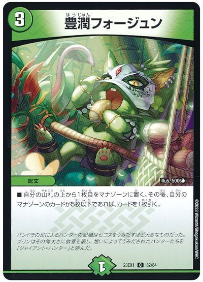 ■自分の山札の上から1枚目をマナゾーンに置く。その後、自分のマナゾーンのカードが5枚以下であれば、カードを1枚引く。