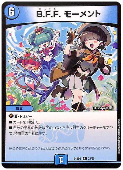 マナに埋めやすい青単色カードであり、2枚コンボなコンセプトを助ける2ドロースペルでもあります。《B.F.F. モーメント》同様こちらも存在自体が相手の攻撃を躊躇させ得る1枚なので、適宜見せびらかしていきましょう。