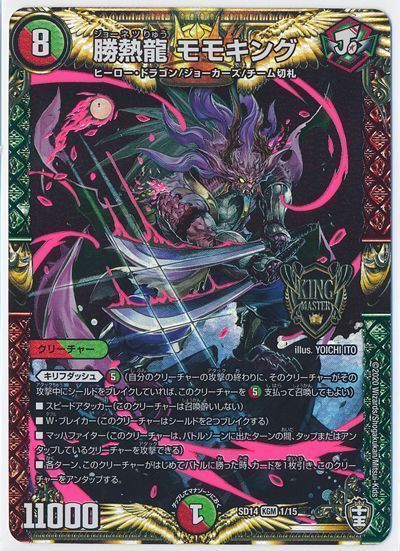 今回の新弾も、事前にコロコロコミックやYouTube、Twitterなどで新カードの情報がちらほらと出ていました。私はモルネクを使っていることもあってドラゴンが大好きで、スターターデッキに収録されている《勝熱龍 モモキング》が判明した時から「これはひょっとして十王篇はドラゴン推しなのでは?」と密かに期待を募らせていました。
