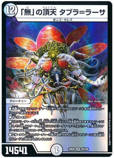 一つ前の『デュエキングMAX2023』では、中途半端に裁きの紋章が再録されたり、コメントに困る性能のダイナモが大量収録されたり……と、ちょっと迷走している様子が見られた。《アクア・ガード》と無関係なカードの下半分に張り付けられた《ガード・グリップ》は泣いていい。