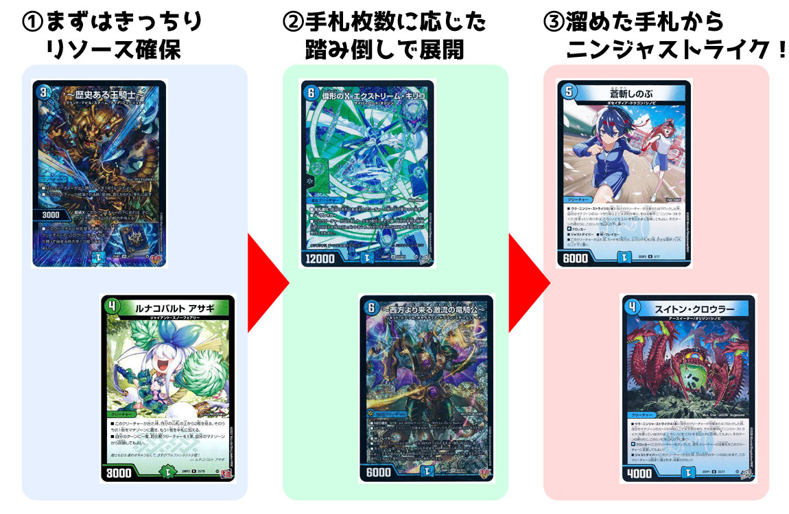 これら増えた手札を有効に使うため、シノビを多く採用してみたぞ。