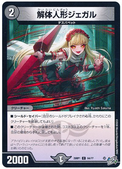 ■自分のクリーチャーすべてに「シールド・セイバー」を与える。(自分のシールドがブレイクされる時、かわりに「シールド・セイバー」を持つクリーチャーを1体破壊してもよい)