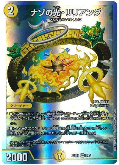 これを2ターン目に踏み倒せる《 ナゾの光・リリアング 》。
