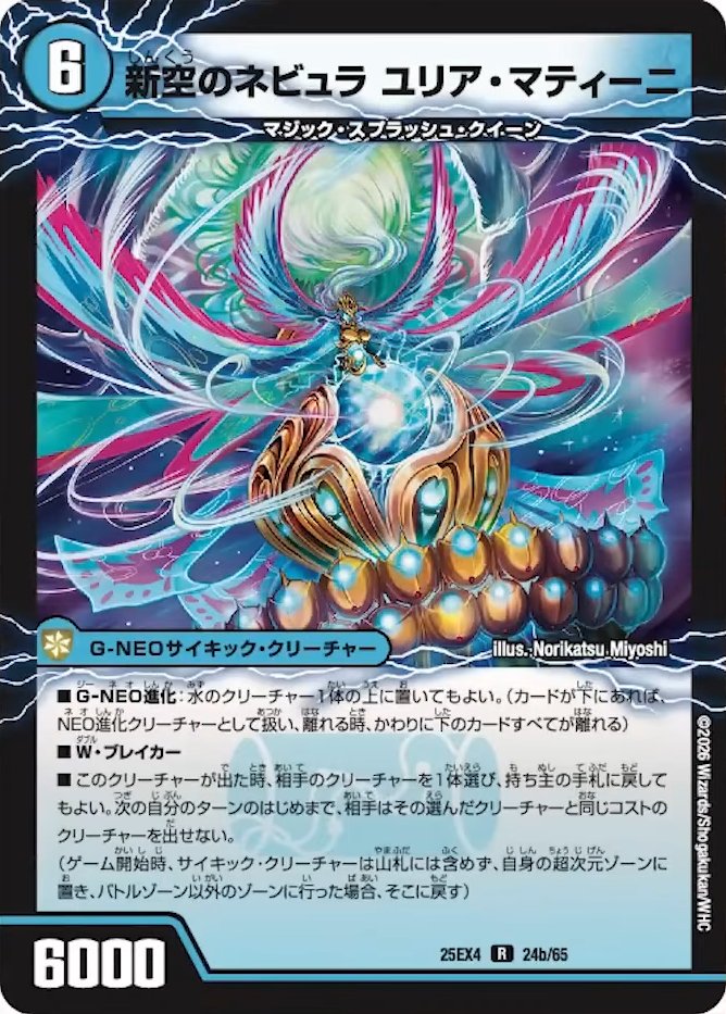 跳次元召喚は、出てくる先も当然強い……ということで、お次は《時空のネビュラ マティーニ/新空のネビュラ ユリア・マティーニ》!「覚醒しないサイキック」、堂々の登場です。