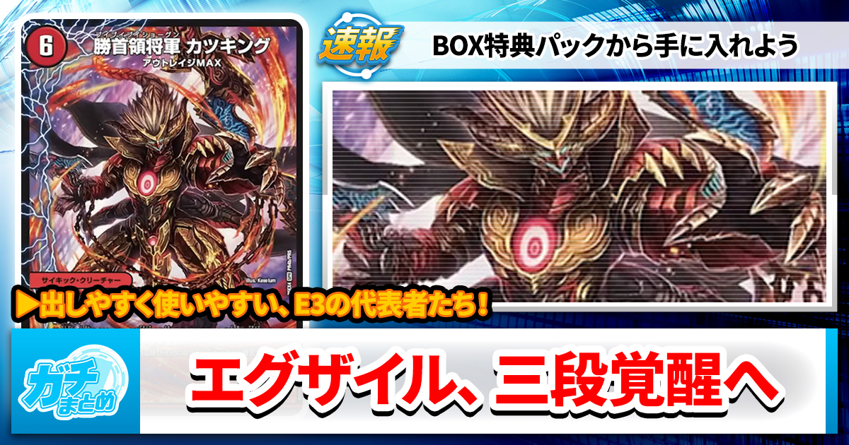 Youtubeより情報が発信され、《金河刃ニケ/金河美刃 ミケランジェロ/最終金河 アヴァンギャルド》超哲駆 ロビー/絶超哲駆 ロビンフッド/最終哲駆 ランスロッド》《豚葬槍 ブータン/地獄葬槍 ブリティッシュ/最終神聖牙 PIGパンク》《勝首領龍 カツドン/勝首領将軍カツキング/最終勝首領 カツマスター》《覇音獣 五郎丸/獣音覇音 グローバル/最終覇音 ワールド無法松》が『エピソード4 パンドラ・ウォーズ』に収録されることが判明しました!