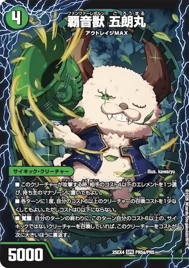 最後は《覇音獣 五郎丸/獣音覇音 グローバル/最終覇音 ワールド無法松》!メンチ斬ルゾウに続き、自然のサイキックのデカブツはネーミングセンスがアレというジンクスがあるかも。