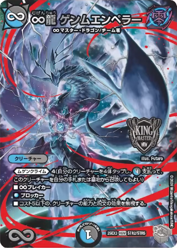 種族 ∞マスター・ドラゴン / チーム零 / 文明 水/闇 / パワー999999999 / コスト999999999