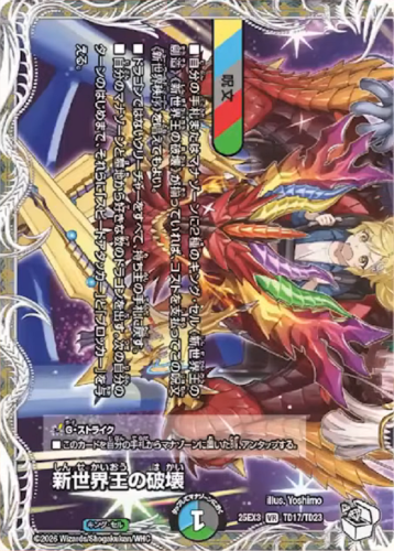 ■自分の手札またはマナゾーンに2種のキング・セル《新世界王の創造》《新世界王の破壊》が揃っていれば、コストを支払ってこの呪文《新世界秩序》を唱えてもよい。